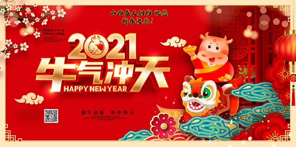 值此新春佳節(jié)到來之際,山西盛大鋼結構工程公司全體員工祝大家身體健康!新春大吉!愿大家歲歲常歡愉,年年皆勝意。2021牛氣沖天!